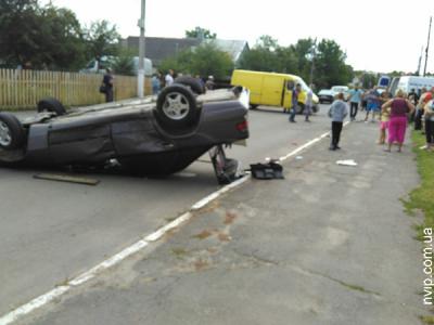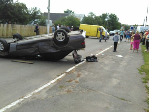 Автомобіль «Mercedes Sprinter» жовтого кольору рухався по вулиці Сковороди у Нововолинську і на перехресті вулиці Миру зіткнувся з легковим авто також марки «Mercedes», який від удару перевернувся.