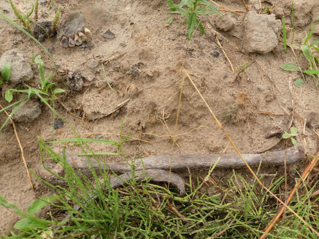 «П'ятидні. Працюють мародери. Міліція відмовляється відкривати кримінальну справу. Кістки людей - жертв геноциду - шукачі золота залишають на поверхні. І це вже не "забор піска" для господарських потреб - як написали у 2011 році», - прокоментував у себе на Фейсбуці Олексій Златогорський.