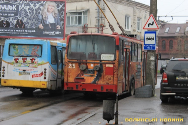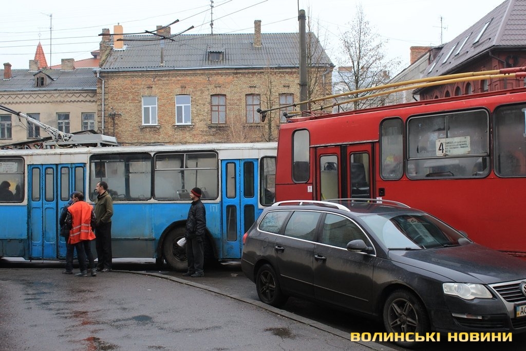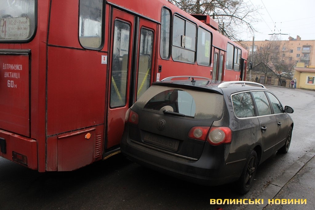 Водій Фольксвагена Пасcату припаркував на узбіччі власне так, що водій тролейбуса, здійснюючи маневр об’їзду, не зумів вивернути кермо електротранспорту і допустив зіткнення з легковиком.
