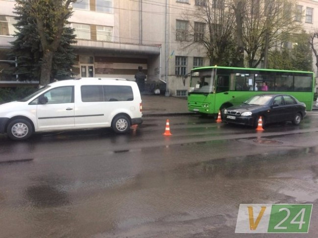 Як повідомляє "Волинь24", водій білого "Фольксвагена" хотів пропустити пішохода і загальмував. Однак "Деу Ланос", що їхав позаду, не дотримався дистанції. Відбулося зіткнення.