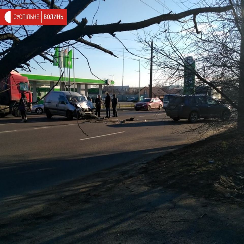На виїзді з Луцька два розбиті авто перегородили дорогу. Фото