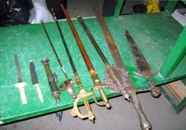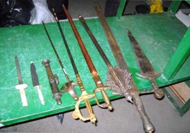 Зокрема, під сумками у багажному відсіку прикордонники та митники виявили три мечі, дві шаблі, два кортики, один пірнач, один фальконет, або дрібнокаліберну гармату, та полотна картин.