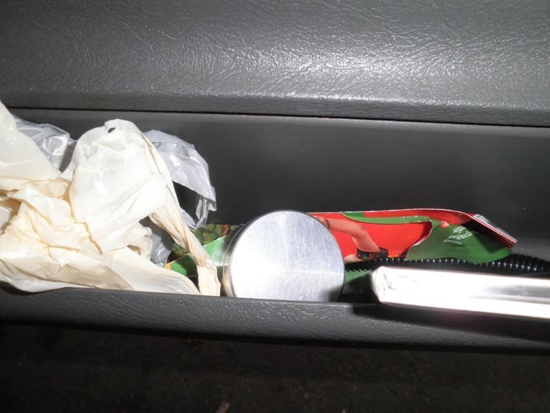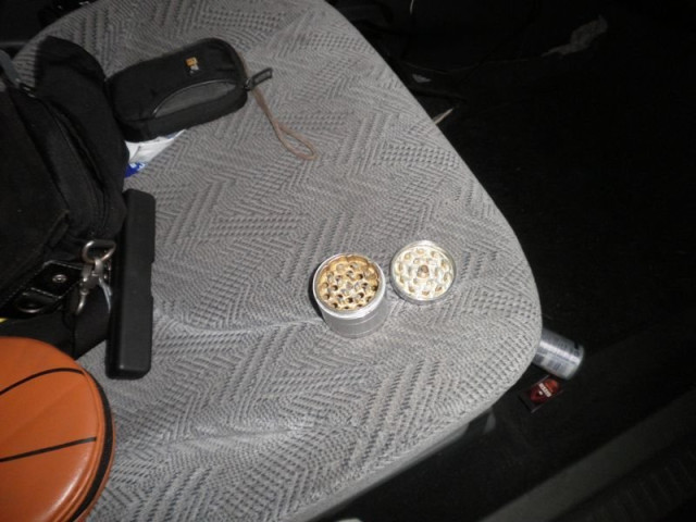 Відразу ж увагу митників привернув дивний пристрій у кишені правої передньої дверці автомобіля – металева банка – подрібнювач речовини – із своєрідним запахом.