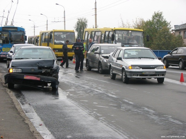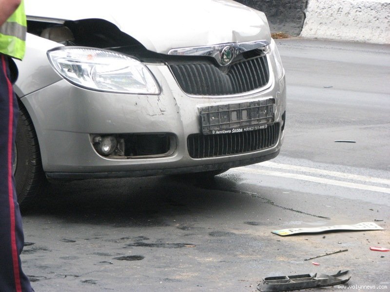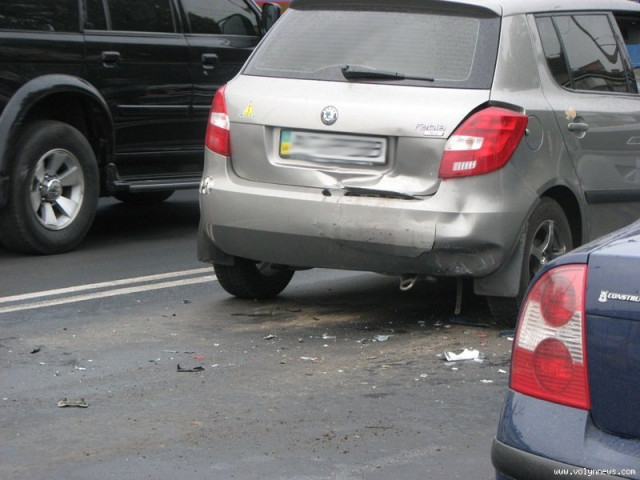Свідки кажуть, що легковик «фольксваген» синього кольору протаранив «зад» «шкоди» сріблястого кольору. Та, в свою чергу, «поцілувала» сріблясту «ладу-самару», що їхала перед нею.