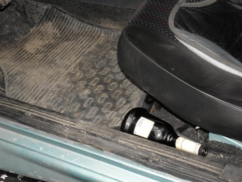 А в салоні біля водійського сидіння при огляді транспортного засобу знайшли ще й пляшку коньяку.
