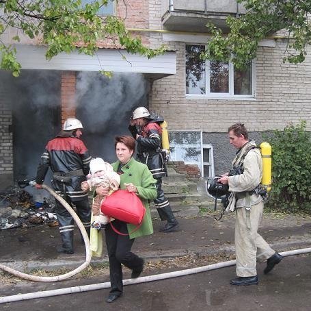В одному із помешкань на четвертому поверсі перебувала жінка з півторарічною дитиною. Пожежний СДПЧ-7 молодший сержант служби цивільного захисту Олександр Богацький узяв дитину на руки і закутав ковдрою. Її матері рятувальник наказав іти поряд. Так, користуючись втрьох по черзі маскою від ізолюючого апарата на стисненому повітрі, люди вийшли із задимленого середовища.
