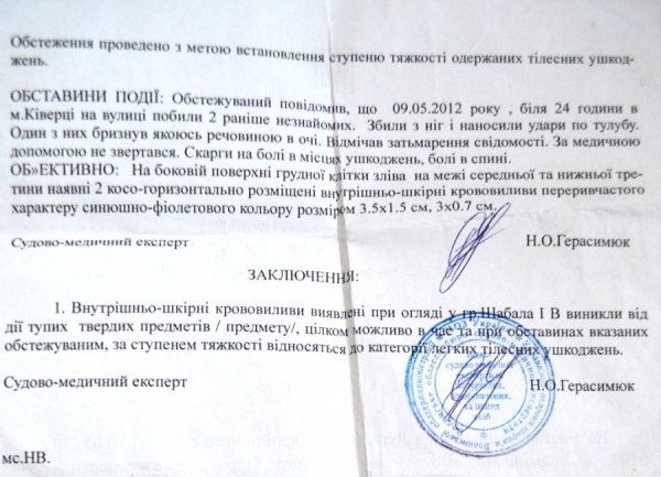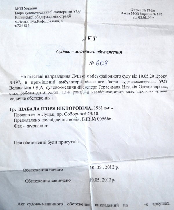 «Це були невідомі мені інспектори. По телефону вони запитувалися у луцьких, що їм робити. Потім фальсифікували протокол про цю ситуацію. Стверджували, що керував у нетверезому стані. Тому нібито зупинили. Вигадали свідків. В результат судмедекспертиза визначила легкі тілесні ушкодження», – стверджує Ігор Шабала.