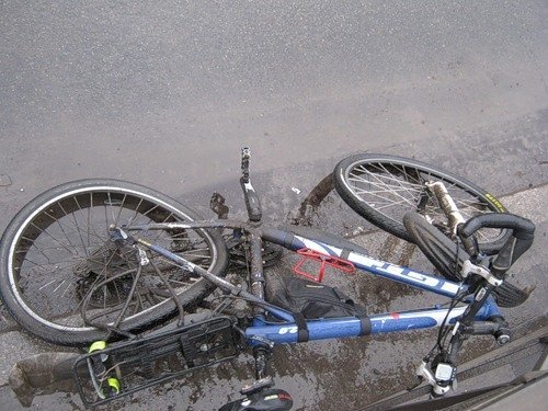 У результаті зіткнувся із велосипедом, який рухався в попутному напрямку.