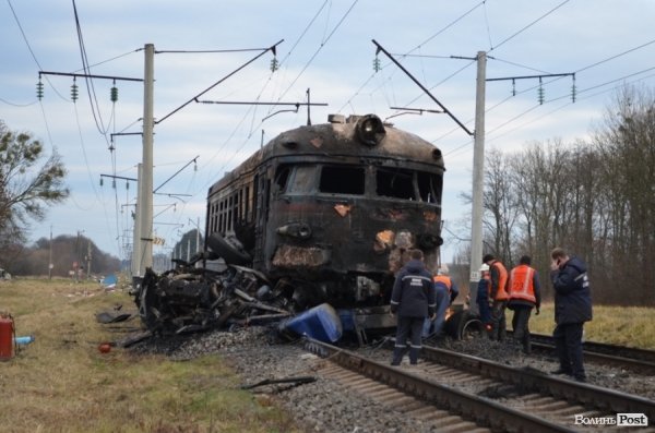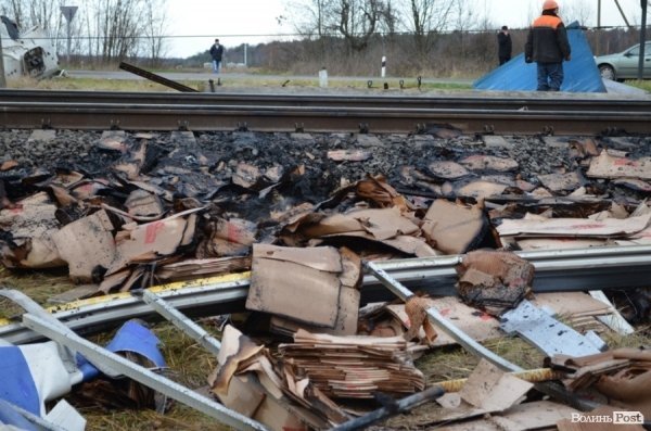 Крім того, як повідомляє радіо «Трек» (Рівненська область), за попередніми даними, водій вантажівки, яка перевозила паперову тару, пішов на обгін колони автомобілів перед залізничним переїздом. В результаті ДТП зійшли з рейок перші вагони потяга, збита електроопора. Зіткнення спричинило пожежу, локомотив електрички згорів повністю. Водій вантажівки госпіталізований. Серед пасажирів електрички жертв та постраждалих немає. За попередніми даними, рух на ділянці дороги буде відновлений за дві години.