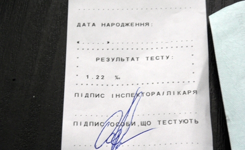 Однак, на тому порушення не скінчились. Із салону автівки доносився різкий запах алкоголю. У результаті перевірки виявилось, що водій був нетверезий. Вміст алкоголю склав 1,22 проміле.