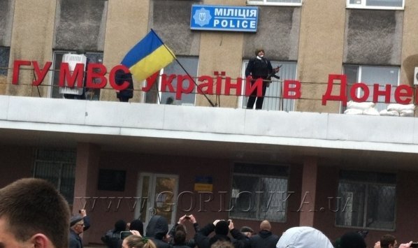 Близько 100 проросійськи налаштованих активістів після годинного штурму захопили будівлю міського управління міліції Горлівки (Донецька область «Понад годину вони штурмували будівлю, міліція оборонялася. Увійшовши до будівлі, сепаратисти ламають меблі, б’ють обладнання. Міліціонерів, які залишилися всередині, виводять із будівлі коридором, побудованим із людей», – повідомляє інтернет-видання «Новости Донбасса».