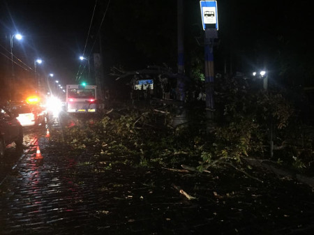 У Чернівцях внаслідок раптової бурі, яка пронеслась над містом, повалено десятки дерев, зірвано білборди і пошкоджено автомобілі.