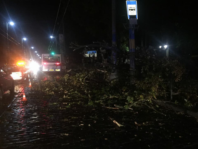 Раптова буря повалила десятки дерев по всій території Чернівців та пошкодила припарковані обабіч вулиці Головної автомобілі.