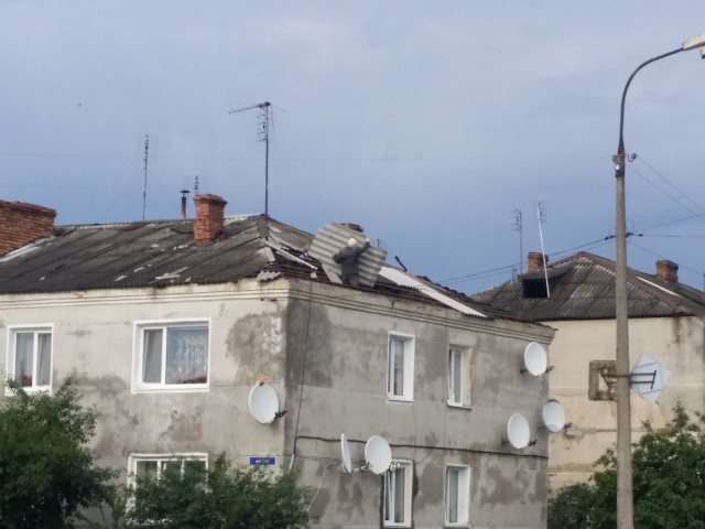 Також, багато дахів позривало й у приватних будинках. Зі слів Олександра, вітром повиламувало стовпи ліній електропередач, у зв'язку з чим фактично усе селище залишилися без струму.
