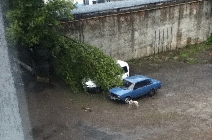 Лютувала негода і в мікрорайоні ДПЗ. У дворі на вулиці Шота Руставелі, 9 сильний вітер поламав дерево, яке впало на припаркований поруч автомобіль. Чи були на той момент в автомобілі люди – невідомо.