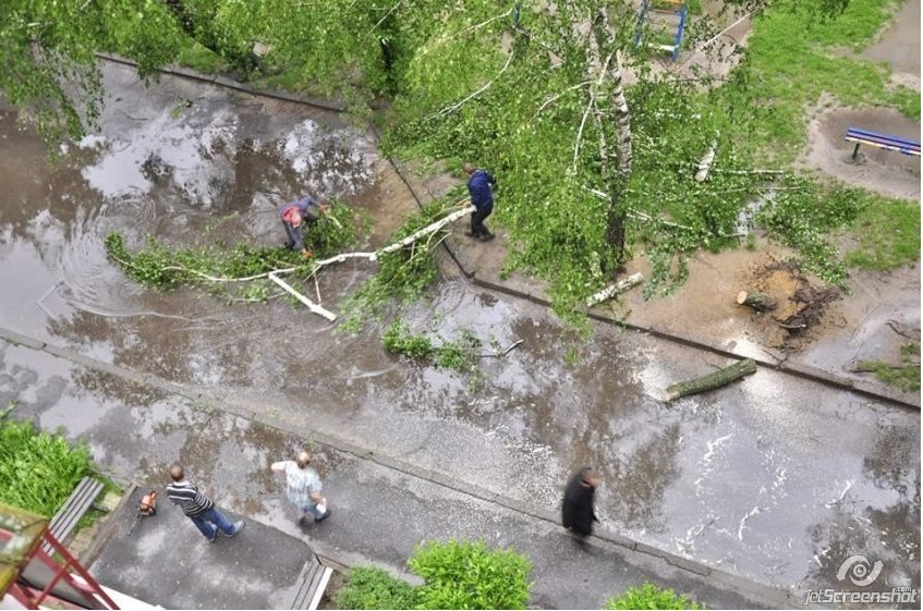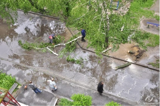 Так, на вулиці Володимирській вітром повалило дерева, деякі з коренем. Водночас гілки порвали дроти, були й такі, що на них повисли. Крім того, проводи під напругою лежали просто на дорозі у калюжах. Тролейбуси не їздили.