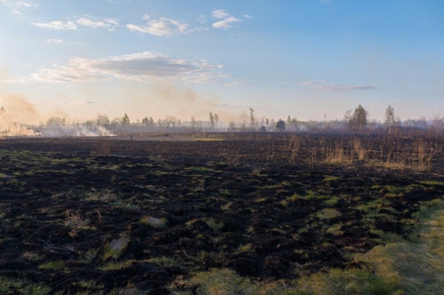 Горять поля між селами Кульчин і Клепачів. Вогонь охопив близько чотирьох гектарів землі.