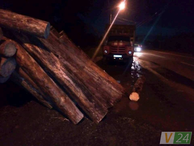 Неподалік Луцька вантажівка «згубила» колоди. Фото