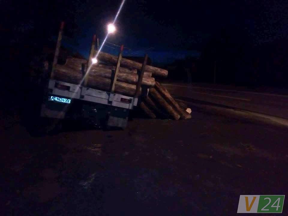 Неподалік Луцька вантажівка «згубила» колоди. Фото