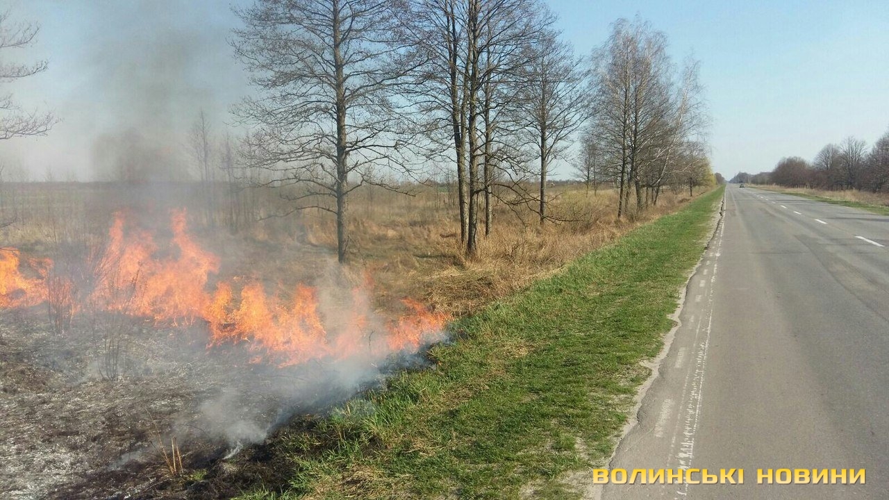 Суха трава горить вздовж траси неподалік села Свидники Ковельського району. Про це Інформаційному агенству Волинські Новини повідомили очевидці.