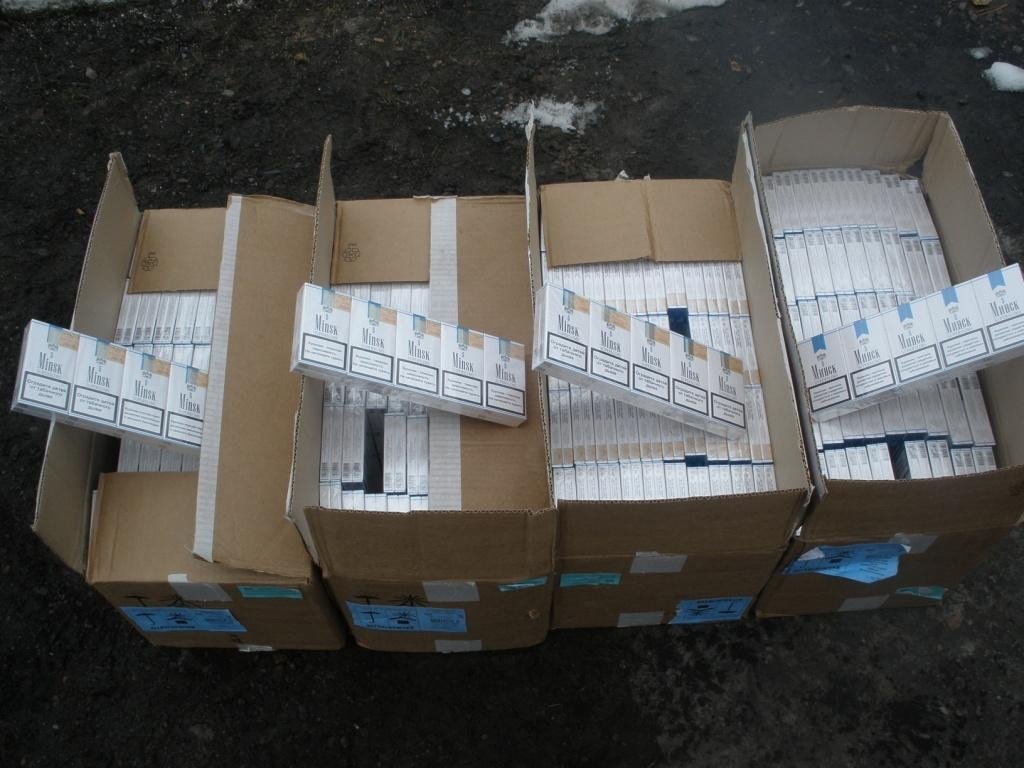 Під час огляду транспортного засобу без реєстраційних номерних знаків, виявили, що номер кузова зрізали болгаркою. Крім того, в автівці знаходилися 4 ящики сигарет білоруського виробництва.