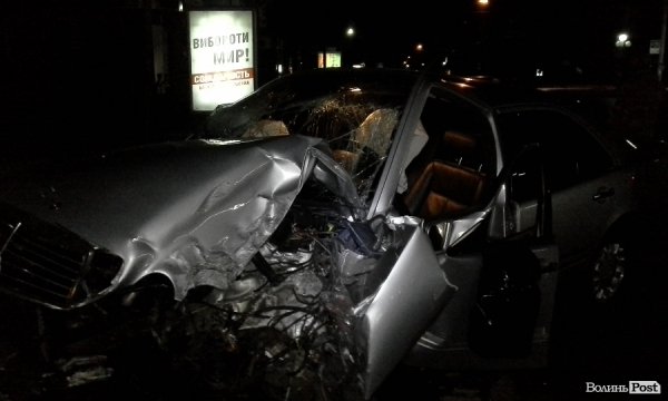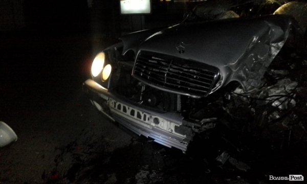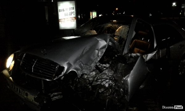 Нічна ДТП у центрі Луцька: Mercedes врізався у стовп