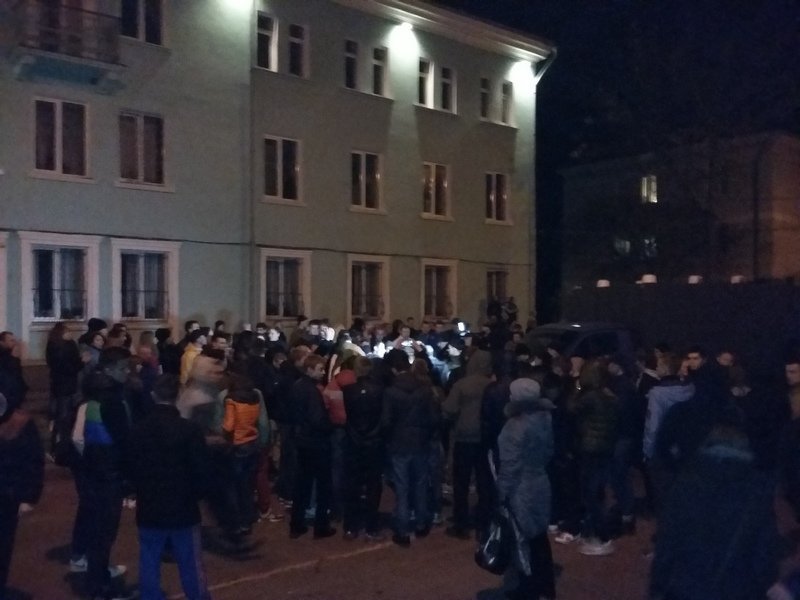 Близько 22:00 затримали і почали обшук компанії молодиків. Декількох затримали і закували в кайданки. Молоді люди вважають дії міліціонерів неправомірними (підстави на обшук незрозумілі, відсутні поняті при обшуку), натомість міліціонери стверджують, що діяли в рамках закону.