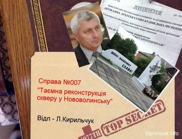 дозвільної та всієї іншої документації, пов’язаної з виділенням бюджетних коштів на реконструкцію площі біля пам’ятника прикордоннику в Нововолинську.