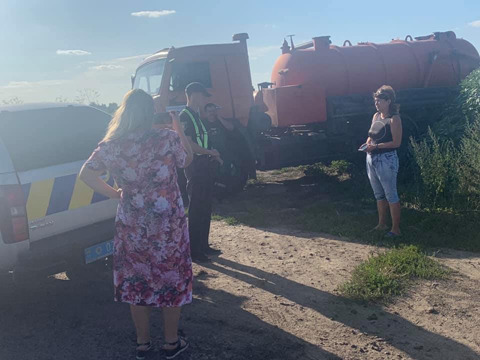 Як йдеться у дописі, жодних документів та дозволів на злив у водія не виявили. Злив відбувався в п’яти метрах від дороги загального користування.