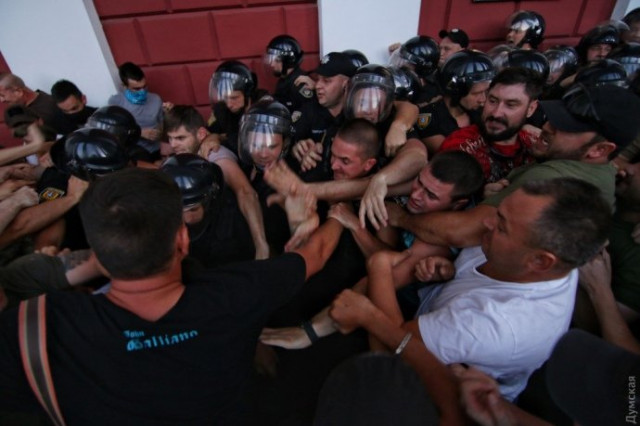 Одеса: під міськрадою бійка і вибух, поліція застосувала газ