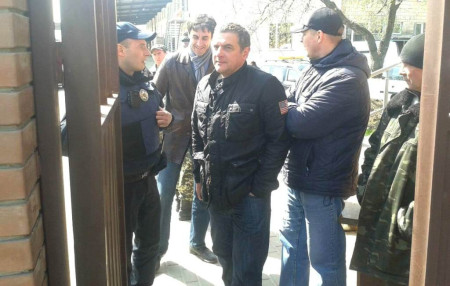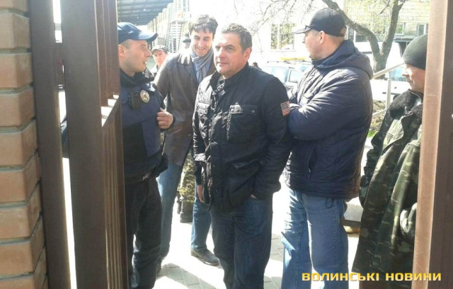 руки в брюки Аркашка Климчук - той що вдарив журналіста, запамяйте всі його, а з шаликом, сміється невідомо з яких причин адвокатик, якого в свій час поперли з виконавчої Черніка Пашка. То така своєрідна амбразура Нестер - фемелі.