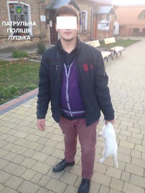 На місці події патрульні затримали особу, поводилась вона неадекватно, мала явні ознаки алкогольного сп’яніння, а при затриманні чинила опір інспекторам. У руках молодик тримав кота, який на момент затримання не подавав ознак життя.