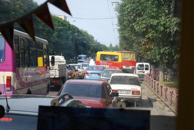 Внаслідок цього на проспекті Перемоги виник величезний автомобільний корок.