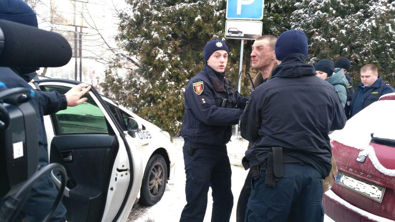 Два екіпажі патрульних наздогнали водія, якого розшукували за орієнтуванням, біля супермаркету «Вопак» на вулиці Київський майдан, 11, де його і затримали. Порушник був настільки п’янючий, що ледве тримався на ногах, коли вийшов з машини.