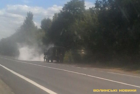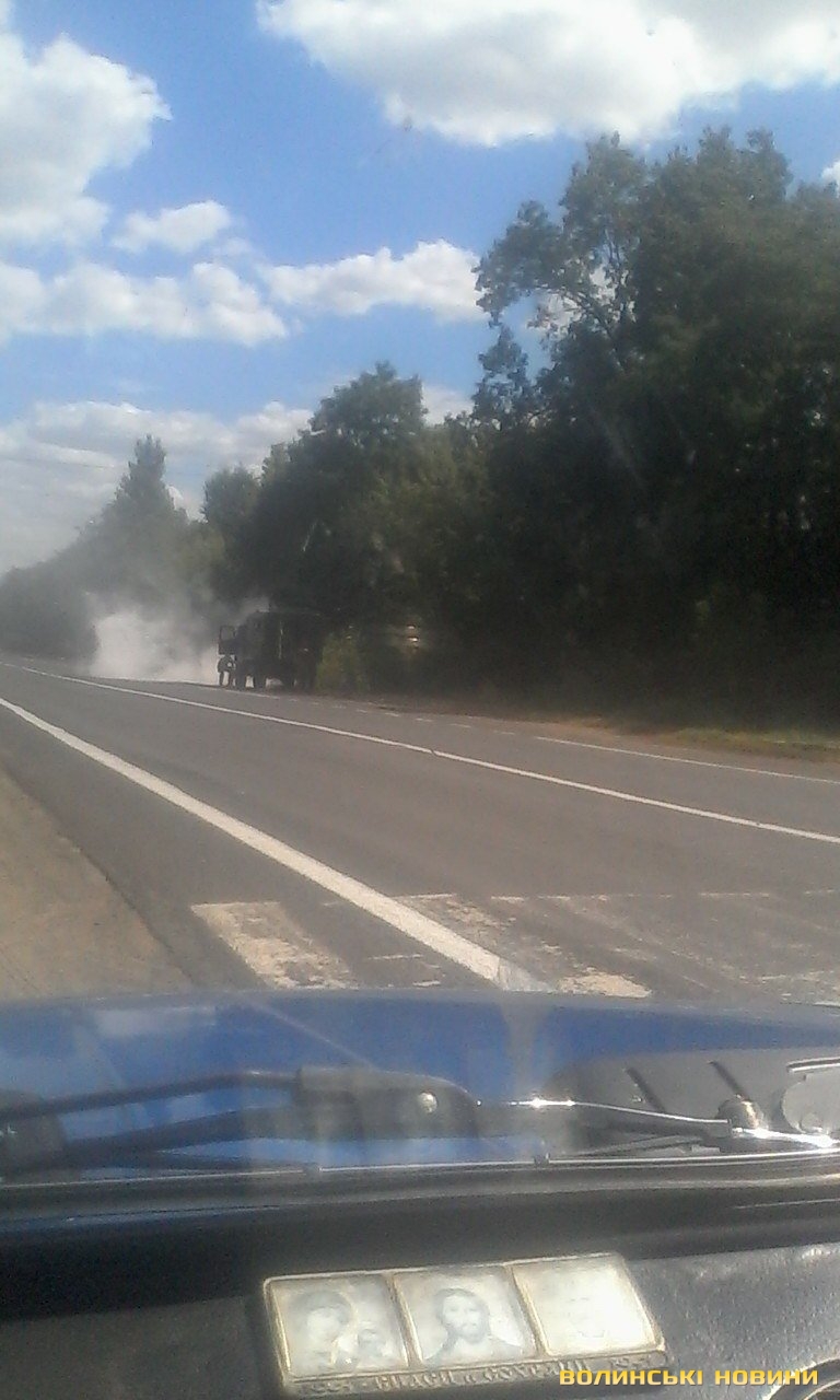З його слів, колона з військових автомобілів рухалась у напрямку Млинова, як один з автомобілів почав диміти та зупинився обабіч дороги.