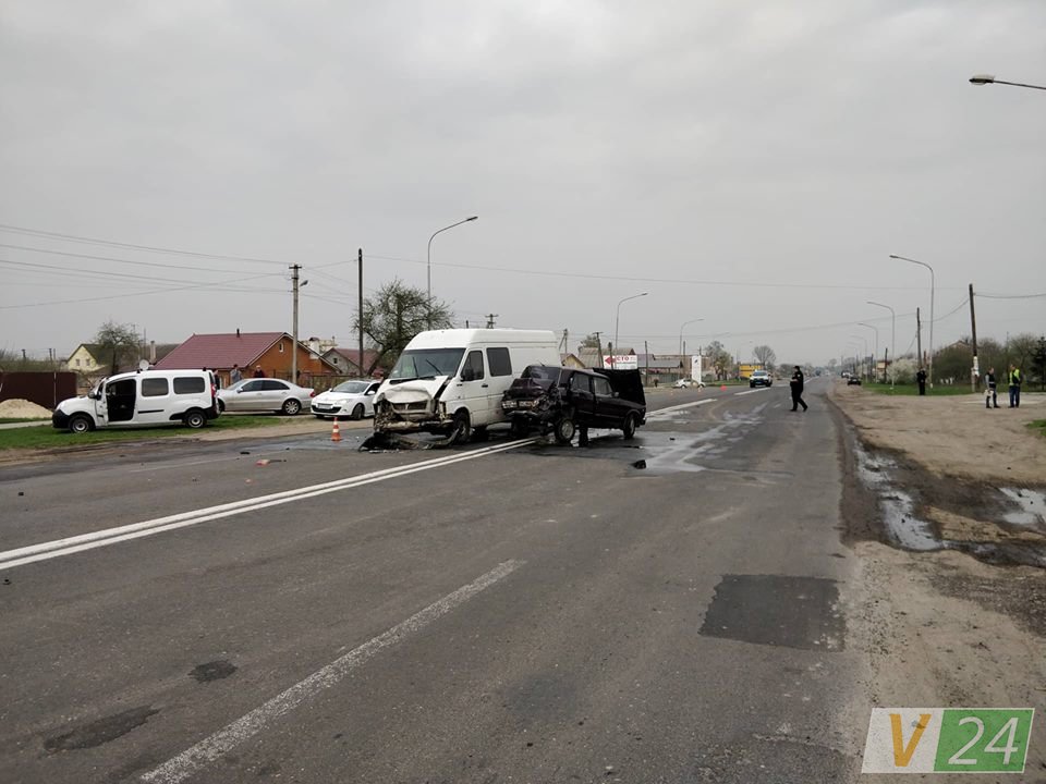 У селі Підгайці Луцького району зіткнулись бус та легковик. Від удару машини сильно понівечені.