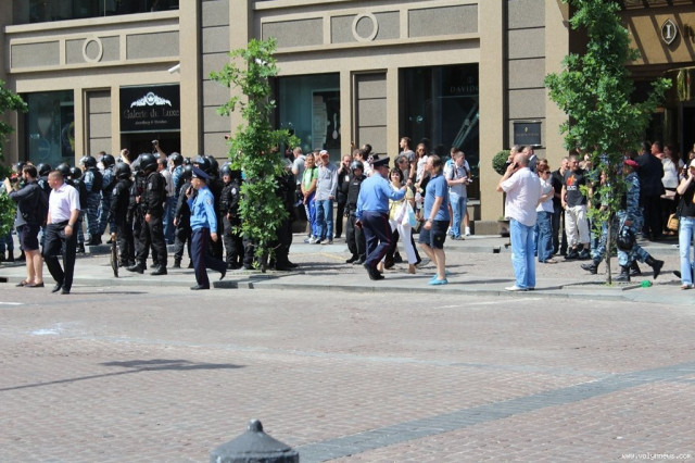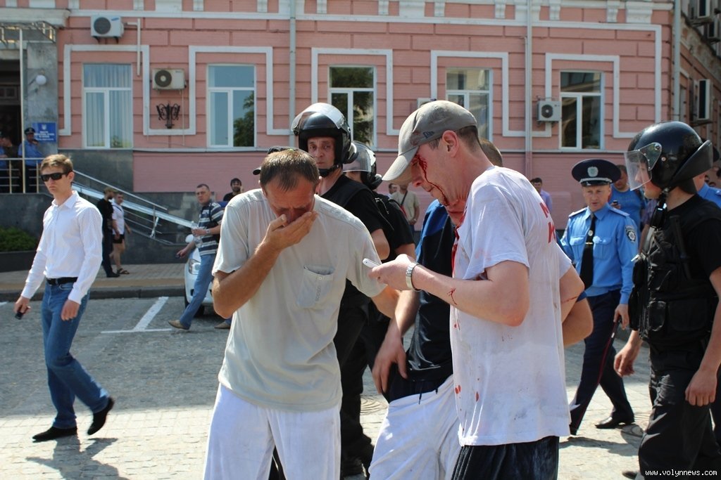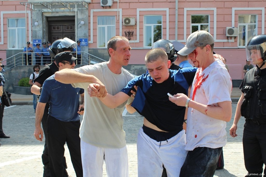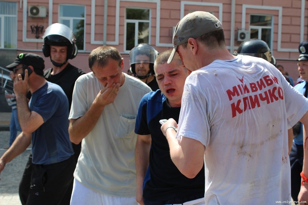 Політик стверджує, що ними виявились насамперед мирні перехожі. Окрім того, вдалося затримати одного із нападників. Зараз його оточили кільцем і тримають на сходах ГУ МВС у Києві.