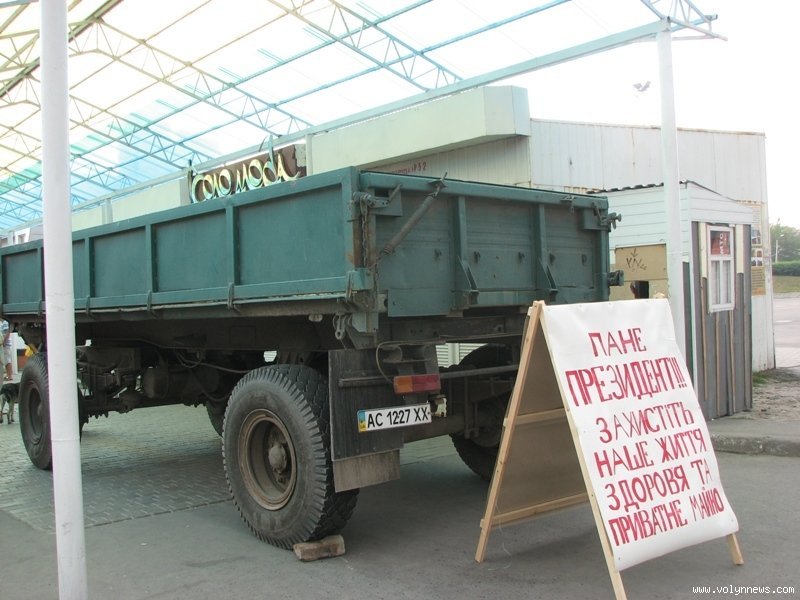 Підприємці торгово-пішохідного ряду між вулицями Кравчука та Карпенка-Карого на Завокзальному ринку у Луцьку 16 серпня перегородили прохід між вулицями Карпенка-Карого та Конякіна вантажними автівками.