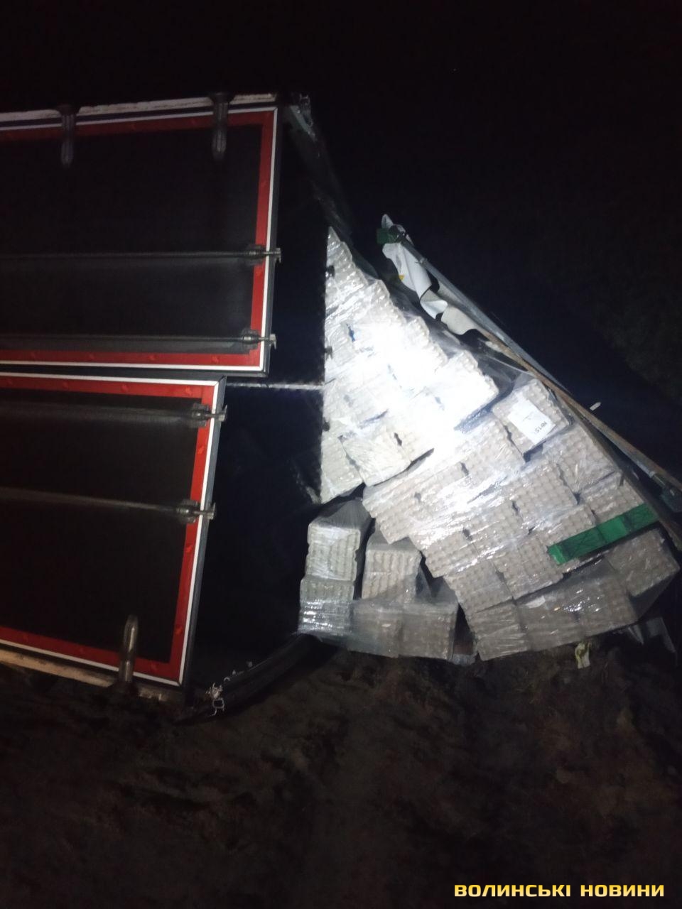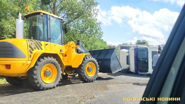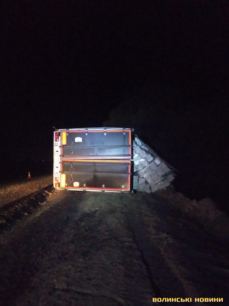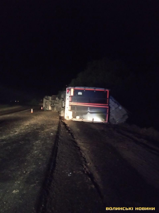 Підрізало авто: біля Луцька перекинулась вантажівка з причіпом. Фото