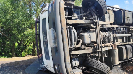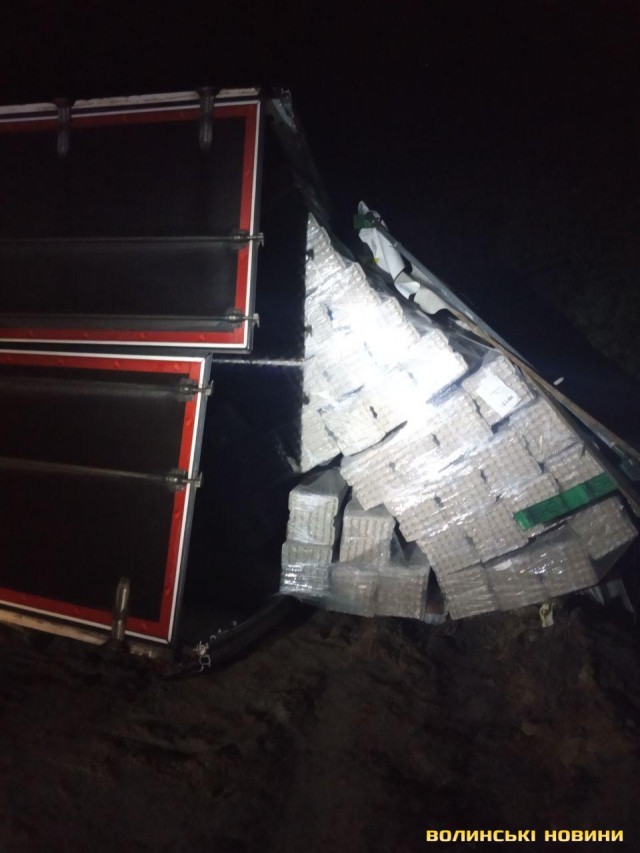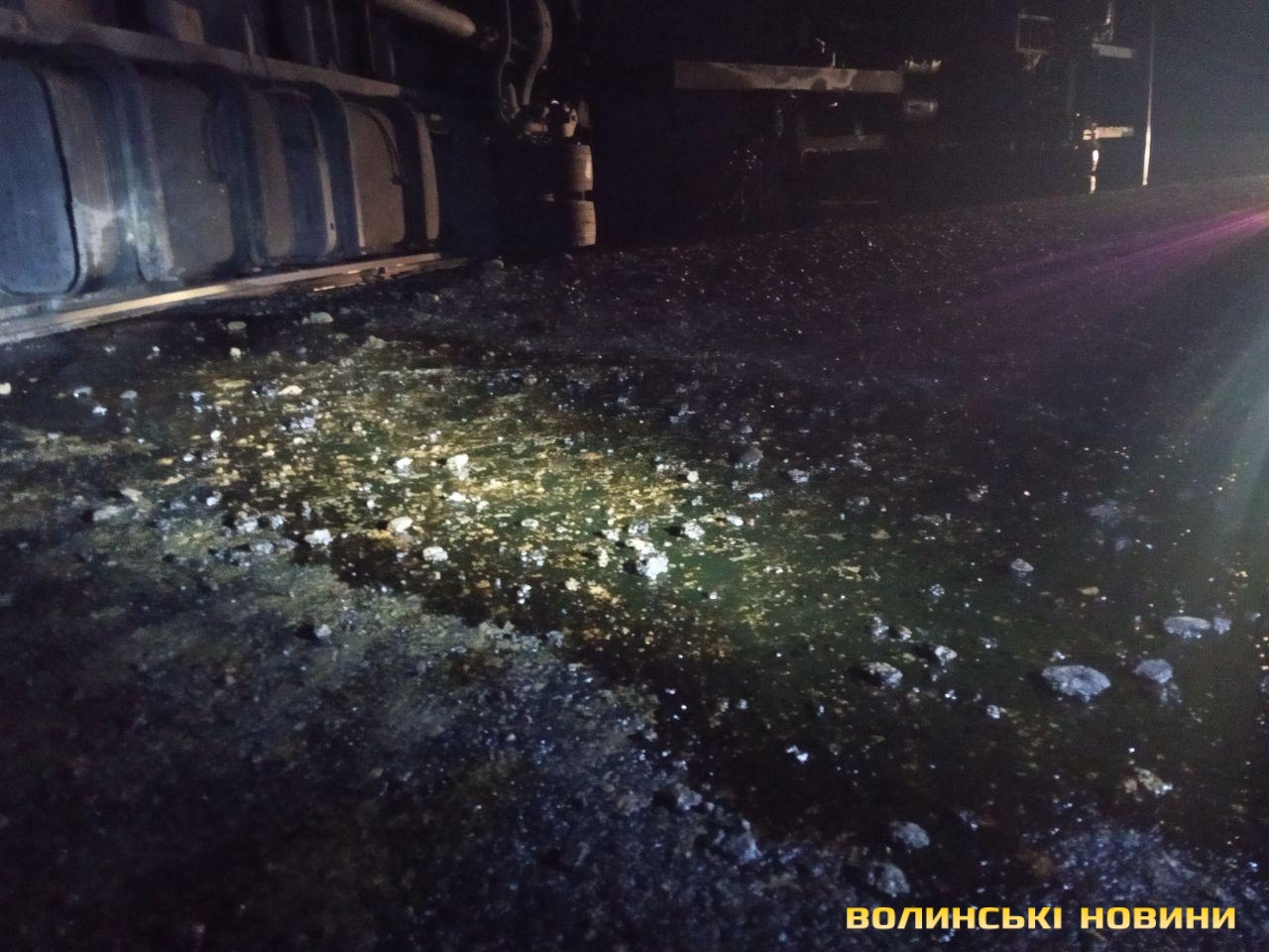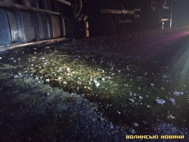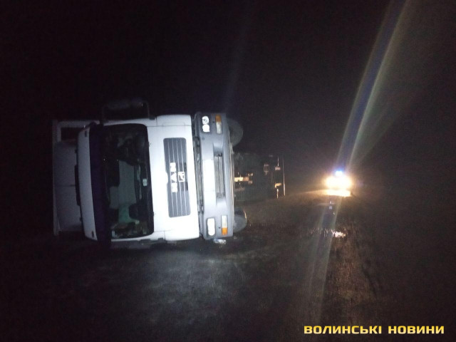 Так, близько 23 години на автошляху М19 (Е85) на узбіччі перекинулась вантажівка «МАН» з причіпом.