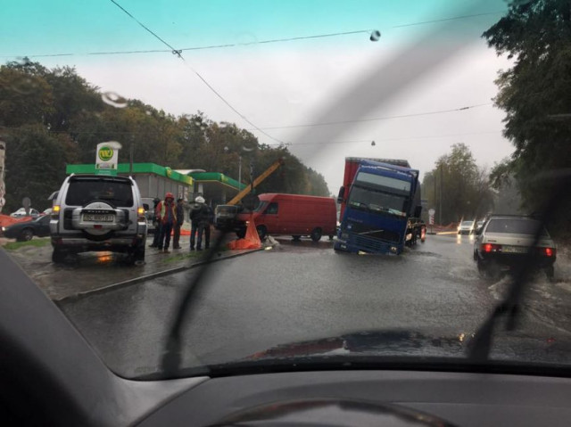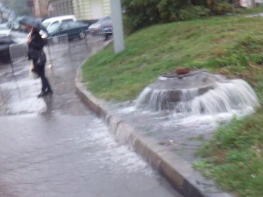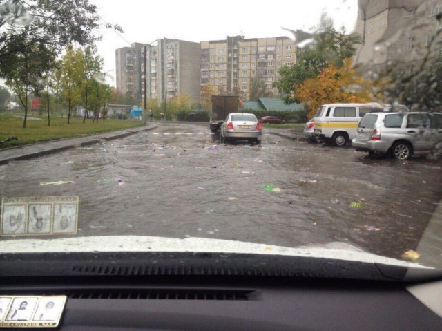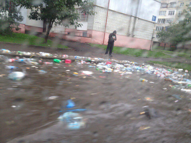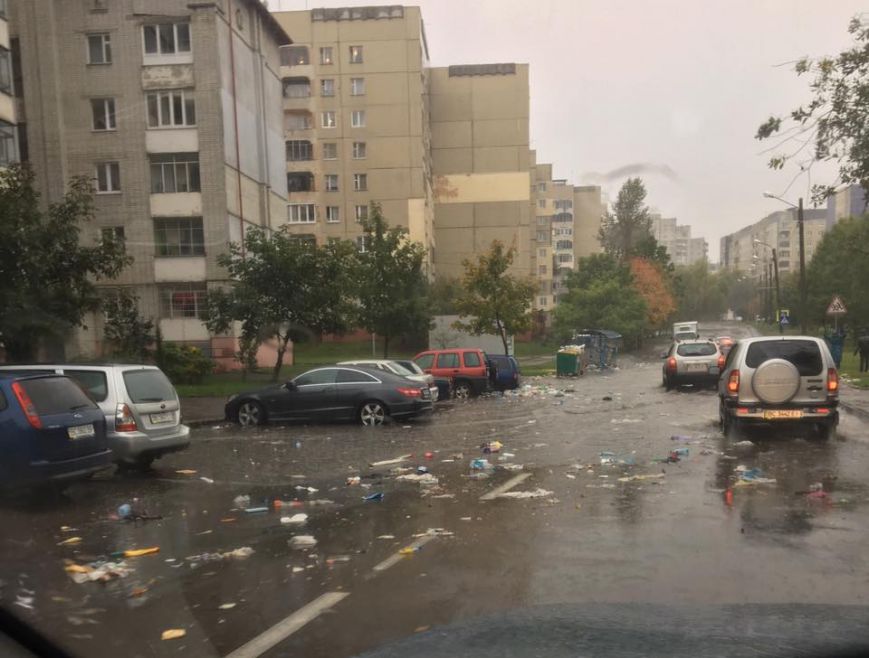 Через сильний дощ у Львові сміття “попливло” по дорогах і тротуарах.