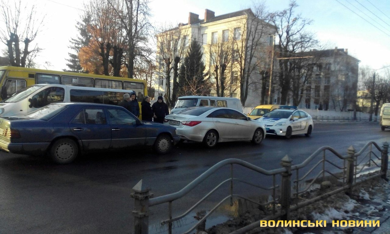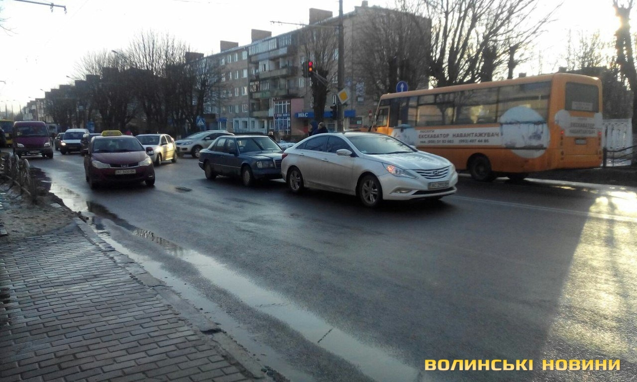 Дорожньо-транспортна пригода трапилася по проспекту Перемоги біля ЗОШ № 5. Водій за кермом автомобіля Mercedes, здійснюючи маневр, врізався в Hyundai.