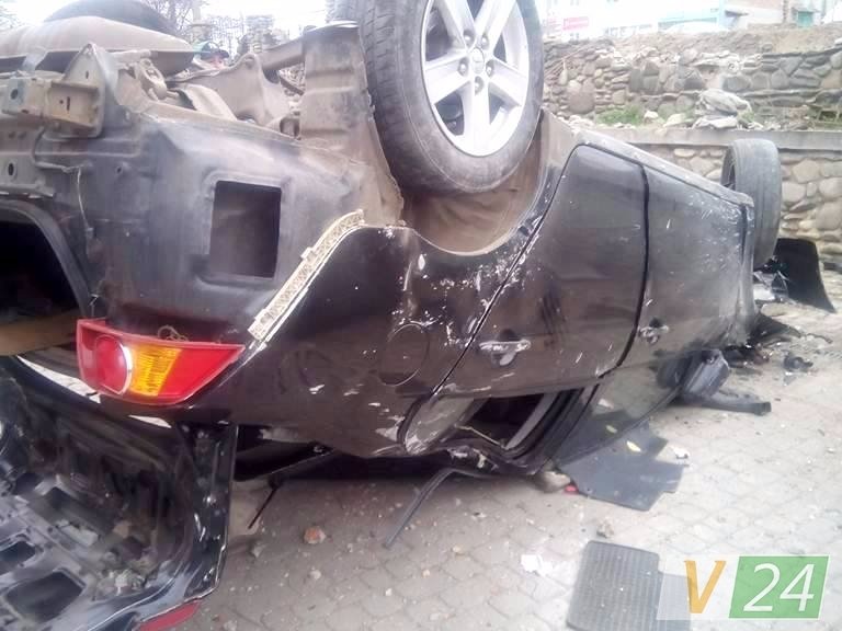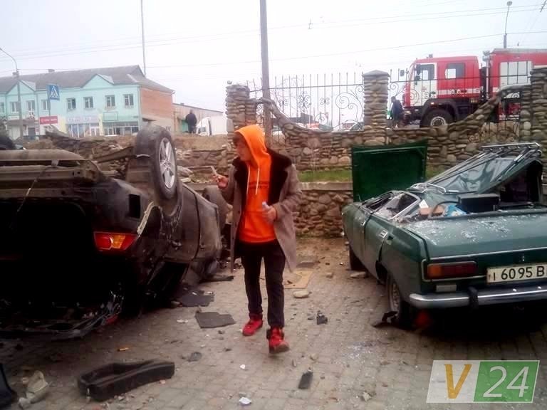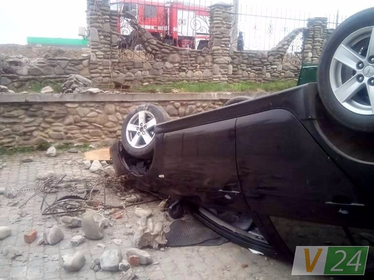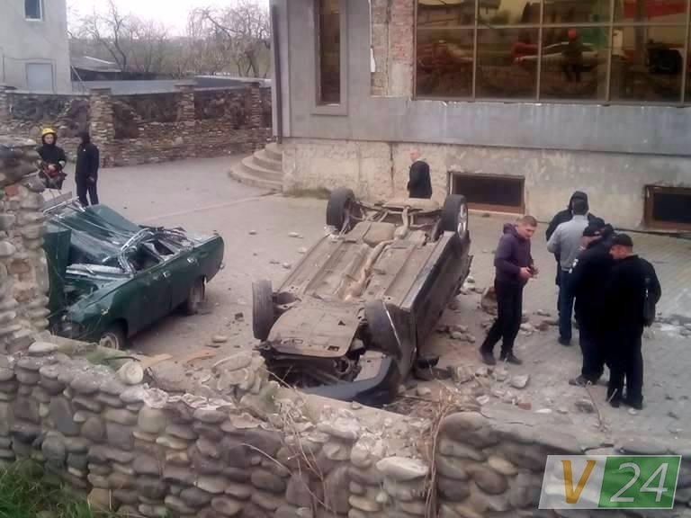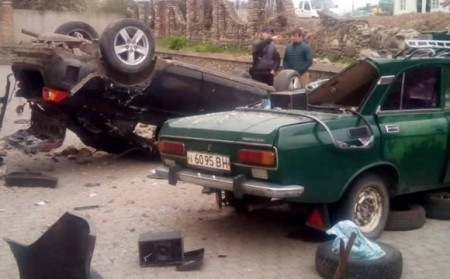 У селі Струмівка сталася аварія. Автомобіль Міцубіші знесло з дороги, він протаранив паркан, зробив сальто і протаранив легковик Москвич, який стояв на території станції техобслуговування.