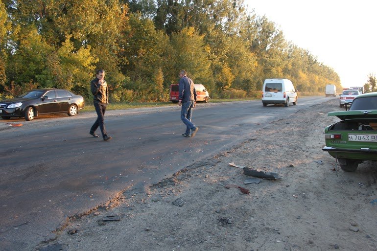 «Кадік мого сусіда.Щойно ним розмовляв. Розповів, що водій на Трафіку їхав «під мухою» в 1,7 проміле. Копійка і Кадік стояли на узбіччі. Бус почав помалу некеровано з'їжджати з дороги. Думаю, заснув. Влупив копійку. Її розвернуло і понесло в фольца. Дивом ніхто не постраждав».