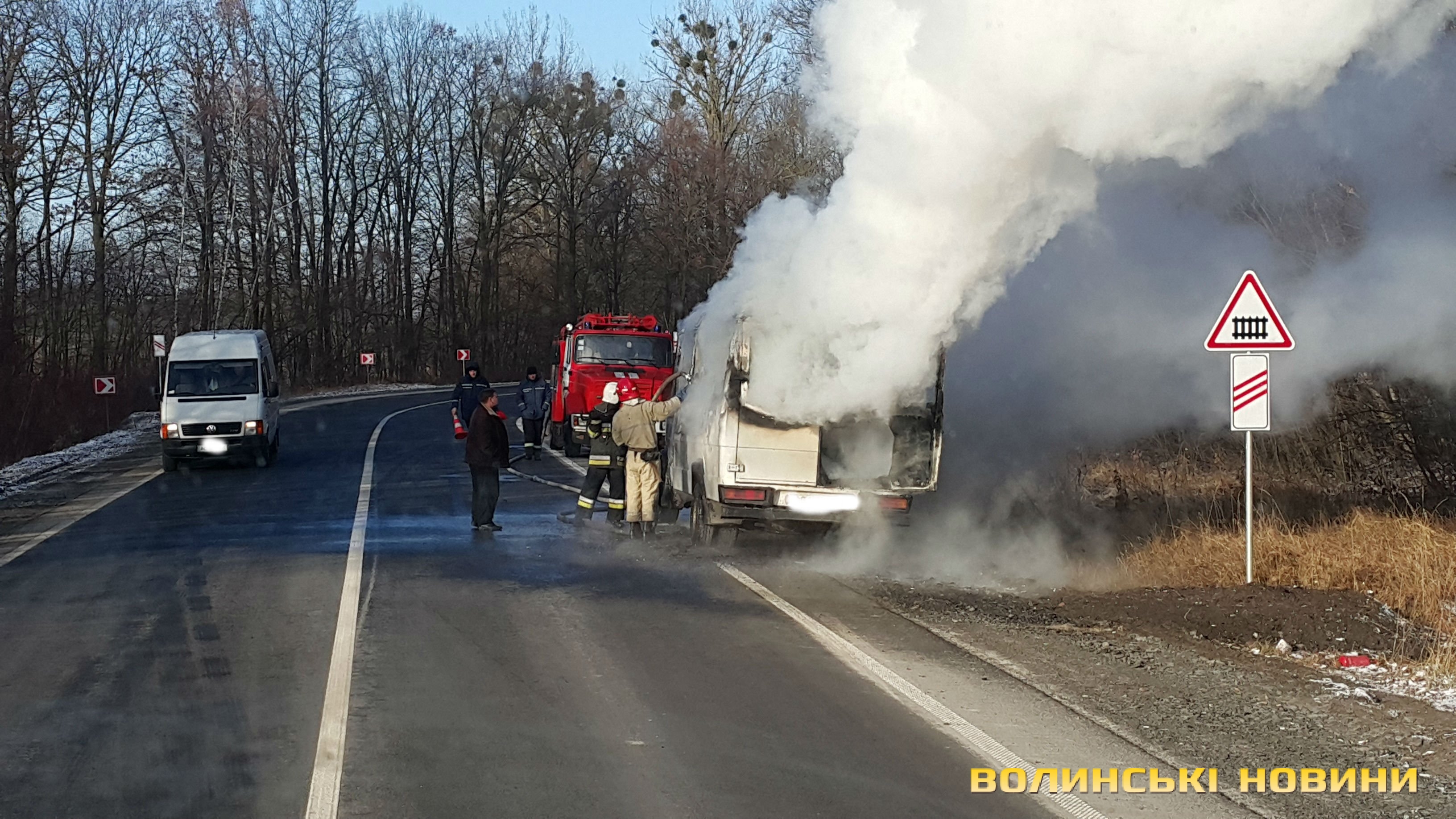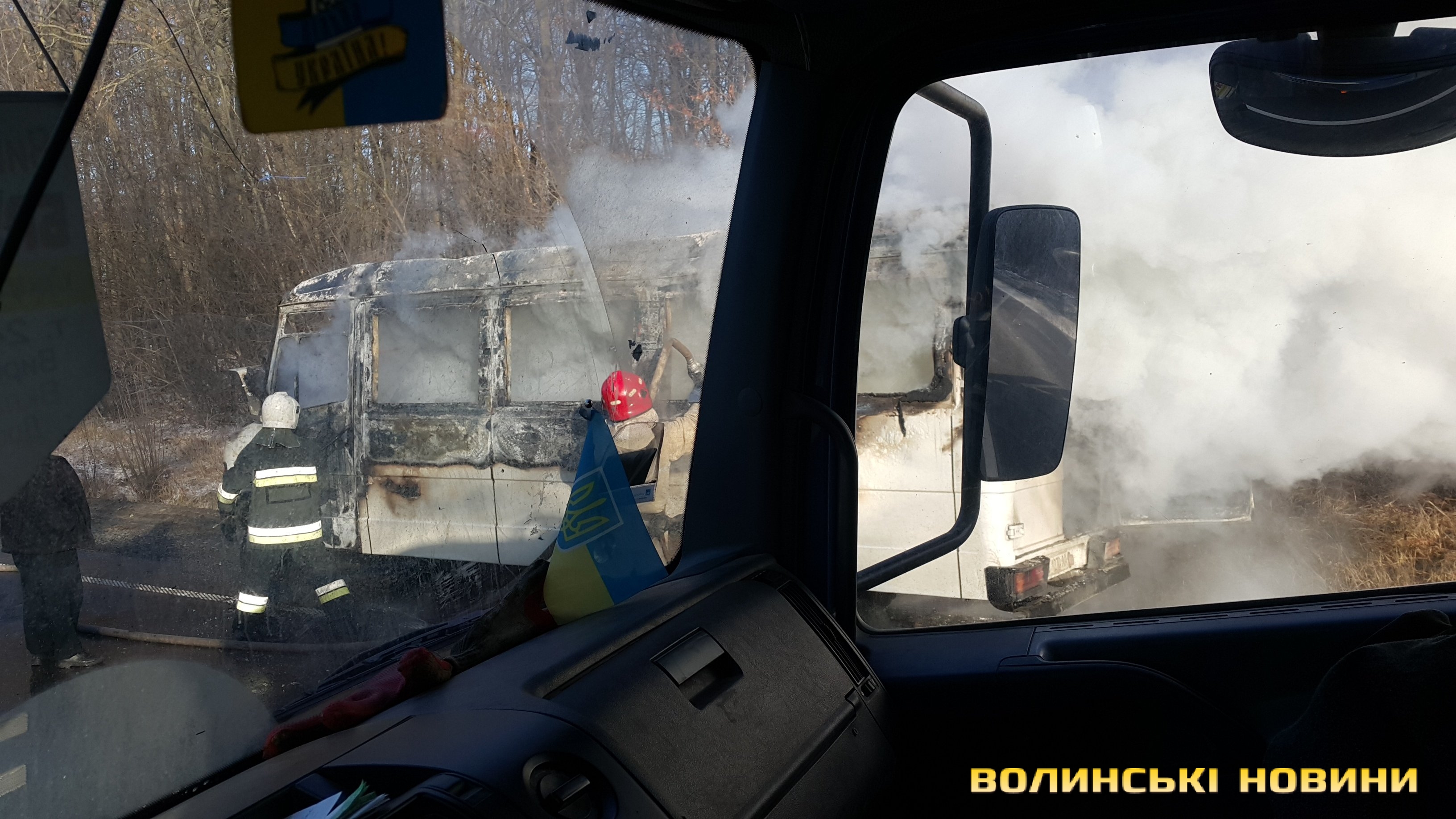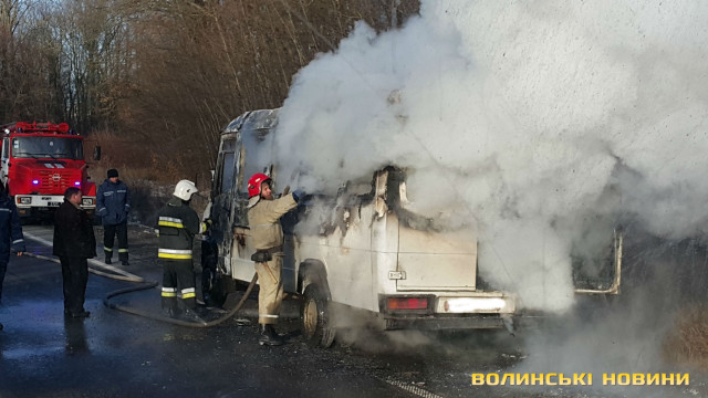 Загорання мікроавтобуса трапилося сьогодні поблизу села Голоби. Про це Інформаційному агентству Волинські Новини повідомили очевидці інциденту.