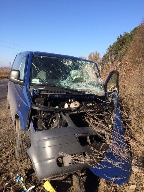 Водій "Рено" виїхав на зустрічну смугу і зіткнувся з мікроавтобусом, в якому перебувало багато пасажирів. Як інформує видання Буг, "Фольксваген Т5", в якому перебував лише водій, зазнав механічних пошкоджень. У другому автомобілі, "Рено Трафік", знаходилося п’ятеро людей.