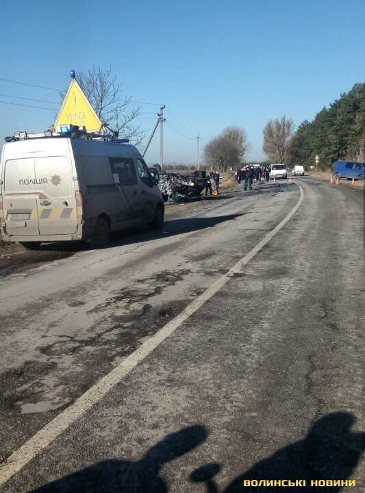 У прес-службу волинської поліції повідомляють, що одна людина померла у лікарні, ще двоє перебувають у реанімації. "Автопригода трапилася близько 8 години. Відомо, що "Volkswagen" зіткнувся з автомобілем "Renault". Внаслідок пригоди один транспортний засіб із пасажирами перекинувся.