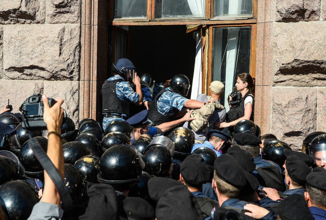 Сьоогодні, 19-ого серпня, перед початком позачергової сесії Київради, працівники міліції заблокували біля правого боку будівлі КМДА депутатів від опозиції, зокрема, А.Яценюка, М.Мартиненко та Л.Ємця тощо. Однак вони намагалися прорватися до центрального входу в будівлю, а потім вирішили відкрити вікно у будівлю зовні. Після цього декілька депутатів потрапили через нього у будівлю КМДА.