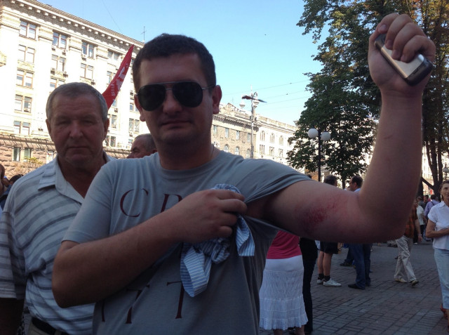 «Народного депутата Украіни від УДАРу Романа Чернегу в приміщенні «народноі» Киівради побив Беркут. Розірвали сорочку, на руках - гематоми і синці. Його тягли, аби викинути з Киівради. Кажуть, що всередині приміщення багато крові - Беркут бив депутатів і ногами. Ярослав Гінка, якому теж дісталося, але сорочка ціла, жартує, що це тому, що він у вишиванці, іі просто так не розірвеш. Все це безчинство «правоохоронців» - репетиція 2015 року», - написала на сторінці Facebook народний депутат від УДАРу Ірина Геращенко.