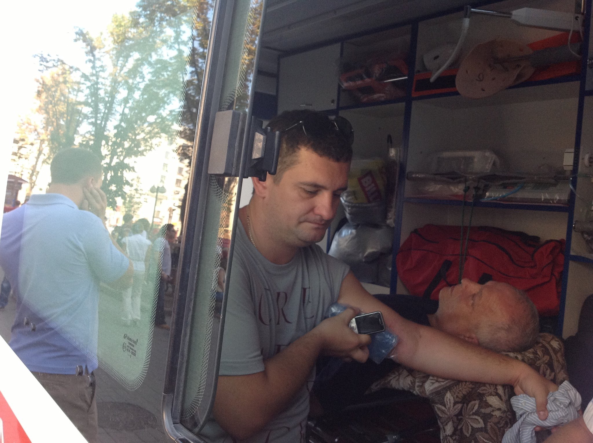«Народного депутата Украіни від УДАРу Романа Чернегу в приміщенні «народноі» Киівради побив Беркут. Розірвали сорочку, на руках - гематоми і синці. Його тягли, аби викинути з Киівради. Кажуть, що всередині приміщення багато крові - Беркут бив депутатів і ногами. Ярослав Гінка, якому теж дісталося, але сорочка ціла, жартує, що це тому, що він у вишиванці, іі просто так не розірвеш. Все це безчинство «правоохоронців» - репетиція 2015 року», - написала на сторінці Facebook народний депутат від УДАРу Ірина Геращенко.